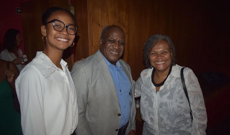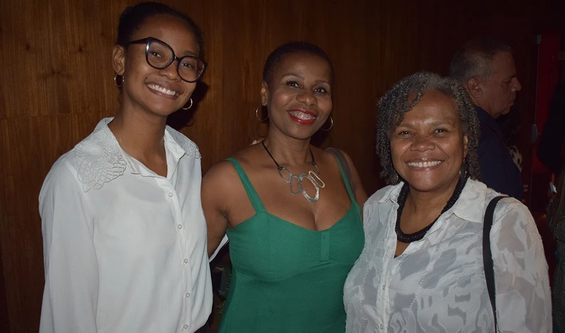Nina Makiadi, estudante de direito na FND/UFRJ, membro da APC; Dra. Ivone Ferreira Caetano, desembargadora aposentada do TJRJ e a Dra. Angela Borges Kimbangu, presidente da Associação Advocacia Preta Carioca – Umoja.